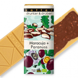 Oszałamiające kolory pochodzą całkowicie naturalnie z jagód i innych owoców. W środku znajdują się domowe pralinki, które sami produkujemy od ziarenka do tabliczki, ze świeżo prażonych orzechów, czystego masła kakaowego i odrobiny pysznej czekolady. Od razu można poczuć wysublimowaną jakość orzechów. Całość wzbogacona dużą ilością posiekanych orzechów i chrupiącymi kawałkami owoców zapewniających smaczną chrupkość. Dla wszystkich, którzy lubią owoce i orzechy razem.