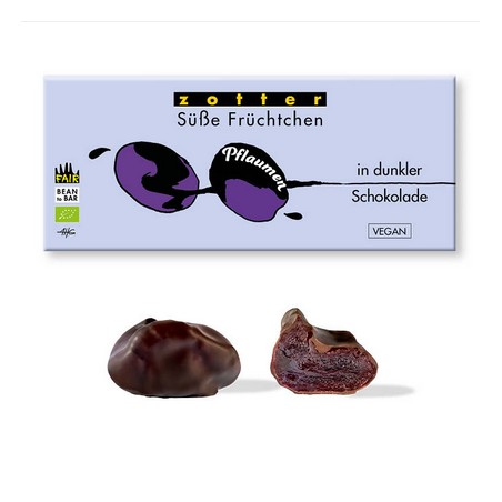 Pachnące, miękkie śliwki w gorzkiej polewie – klasyka. Idealnie wyważona słodycz owoców i czekolady. Wyprodukowane z naszej własnej gorzkiej czekolady z użyciem najwyższej jakości ziaren kakaowca, czystego masła kakaowego i naturalnego, surowego cukru trzcinowego. Eleganckie, owocowe, klasyczne.